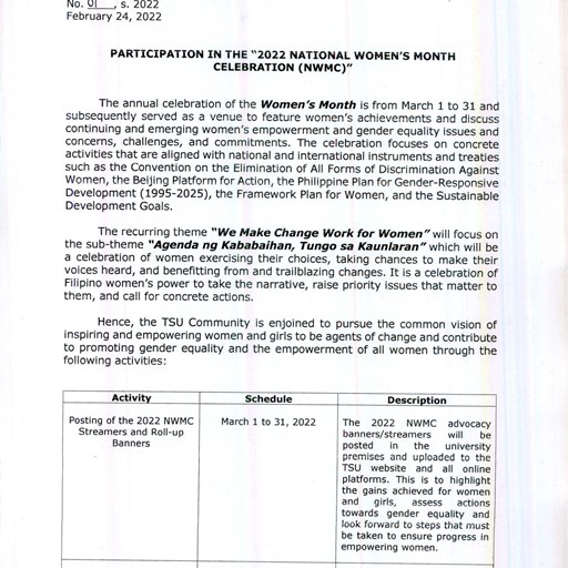 by TSU Memorandum Circular No. 1, series of 2022 –