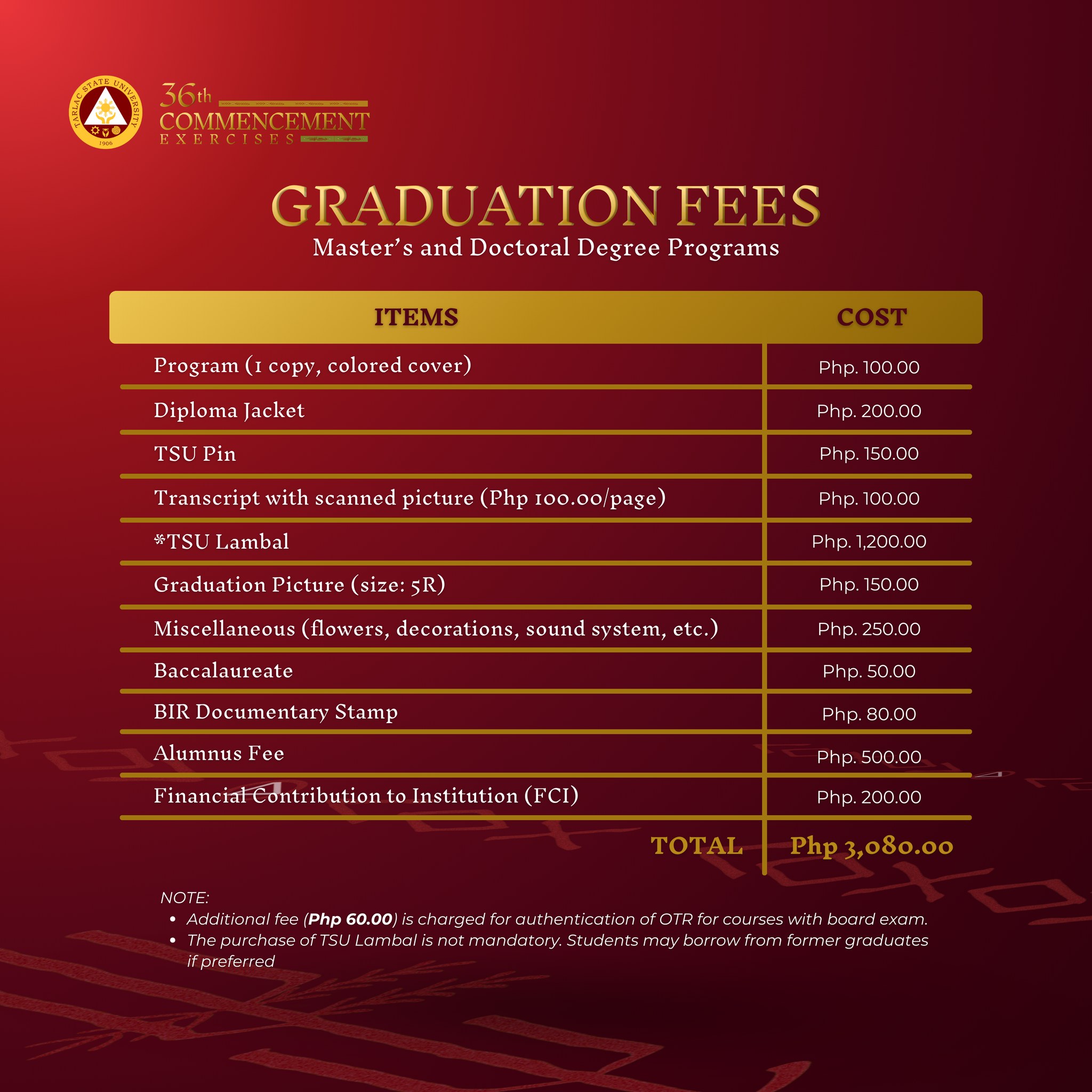 The activities and schedule for the 36th Commencement Exercises of Tarlac State University this January 24, 2025 is now available through TSU Memorandum Order No. 74, s. 2024.