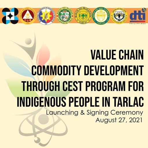 The project titled Value Chain Commodity Development through CEST Program for Indigenous People in Tarlac was officially launched earlier today via Zoom through the leadership of Tarlac State University in partnership with the Department of Science and Technology (DOST) III, DOST-Provincial Science and Technology Center (PSTC) – Tarlac, National Commission on Indigenous Peoples (NCIP), Department of Trade and Industry (DTI) III, and the municipalities of San Clemente, San Jose, Mayantoc, and Bamban.
