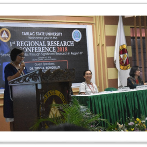 The 1st Regional Research Conference was held on October 4-5, 2018 at the Tarlac State University. The invited plenary speakers were Dr. Tirso Ronquillo, Philippine Association of State University and Colleges (PASUC) President and President of Batangas State University and Dr. Caridad Oli Abuan, Regional Director of Commission on Higher Education Office (CHEDRO III). The conference was attended by a total of 40 research paper presenters and 49 participants from different state universities in Region 3.